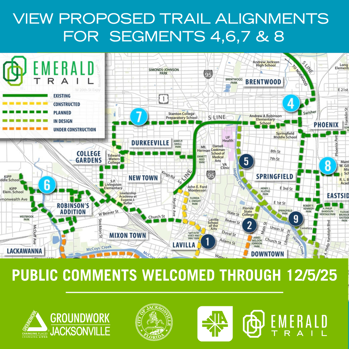 Groundwork Jacksonville, Inc. was established in 2014 as the city's nonprofit partner in building the Emerald Trail and restoring McCoys Creek and Hogans Creek. Groundwork Jacksonville is one of 21 Groundwork USA trusts in the country and the only trust in Florida.