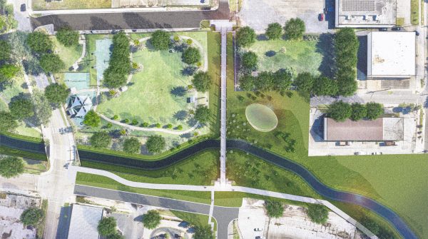 Groundwork selected environmental engineering and architectural design firm Halff, with partners Ecosystems Planning & Restoration (EPR), Alpha Envirotech Consulting, and Ghiotto & Associates. The design is currently at 60%.