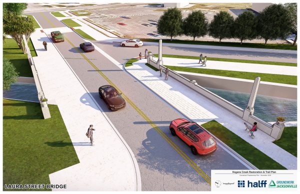 As part of the ongoing effort to develop the Emerald Trail project in Jacksonville’s urban core, Groundwork Jacksonville has partnered with the City of Jacksonville (COJ) on the Hogans Creek restoration project. Hogans Creek is listed as the #2 priority in the COJ’s Local Mitigation Strategy—right behind McCoys Creek—and identified as high risk for flooding and storm surge.Ā